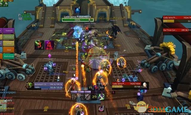 在第一阶段,最主要的任务是躲好吉安娜的冰霜法术,然后把火药桶抛到船的边缘。期间还会有库尔提拉斯的海盗来骚扰,玩家要击退这些海盗。