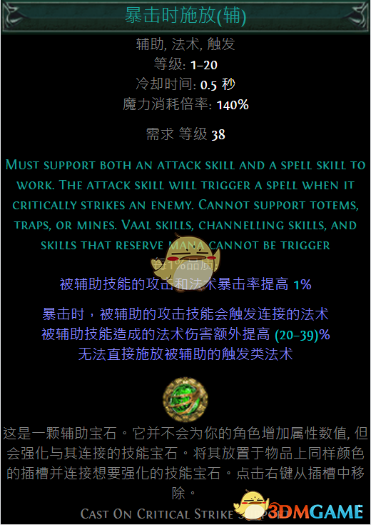 COC 暴击时释放,在本版本加强了不少,这个技能的意思是用一个攻击技能打出暴击后触发与之连接的法术技能。