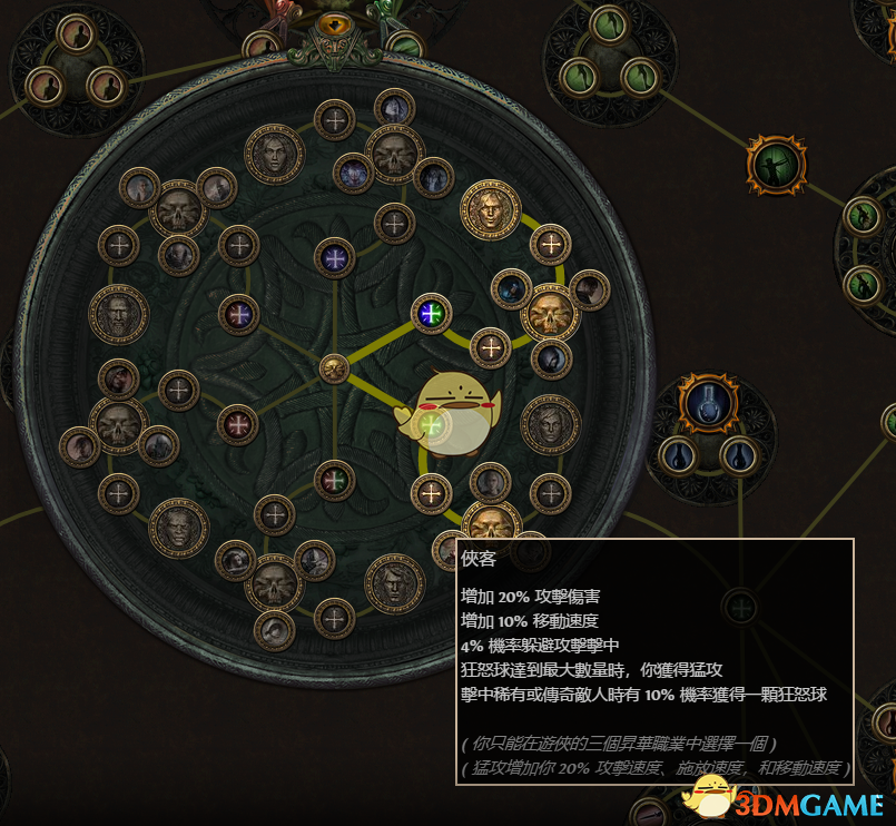 具体来说 天赋我们点出了狂怒球,升华我们点出了侠客升华常驻给我们大量攻速移速,让我们随时能够满球,给我们常驻猛攻,同时可以开鲜血狂怒,装备上找到了大量的攻击速度
