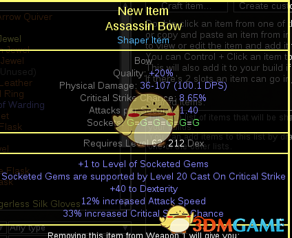 3.武器, 武器方面我们要用高暴击底子的弓 推荐暗影弓来制作, 带暴击率的词缀 总暴击可以在8.6以上