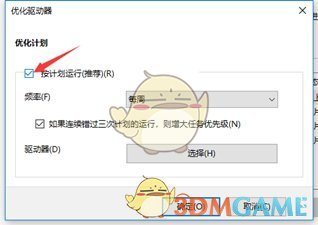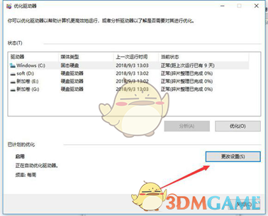 4、下面的自动优化是启用的,我们要关掉,点击更改设置。