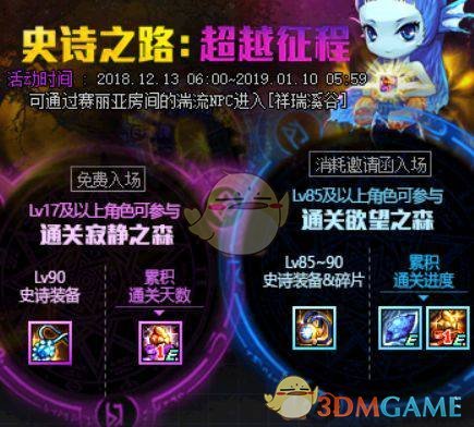 消耗深渊派对邀请函进入的次数应该是有限制的,根据以往惯例,应该是免费三次,可进入次数十次。对于很多玩家的Lv85史诗装备不齐全,Lv90史诗装备4=1的问题,你们可以在本次的史诗之路上尽情探索,毕竟现在的许愿系统这么发达,想要从一个副本中拿到自己想要的史诗,只要坚持许愿,还是可以的!史诗之路的开放周期大概有一个月的时间,这段时间每天都可以玩成通关次数,保证可以兑换到所有奖励,跨界石稳妥的拿到手不成问题。所需要准备的是: