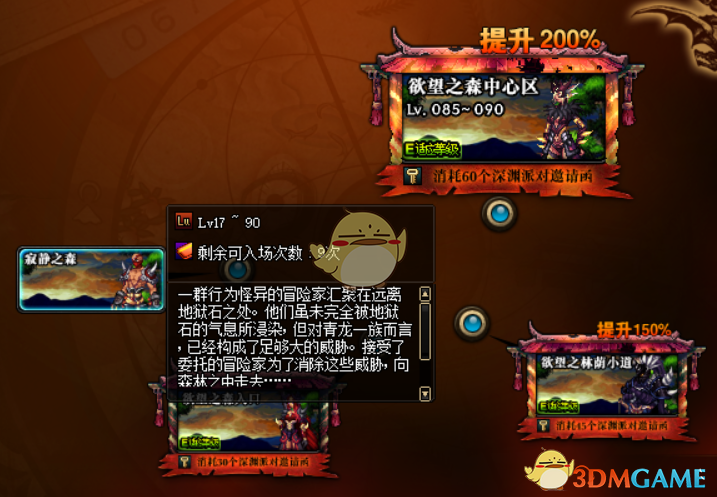 欲望之森中心区这个地图,每次耗费60张深渊票,消耗3点疲劳