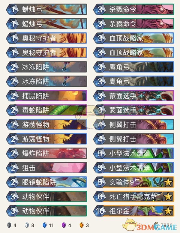 新版本初期最多的卡组就是带上祖尔金的各种猎人卡组,可从昨天开始出现了一张招募奥秘体系的猎人,可能是因为法术猎与奥秘猎最近惨遭针对吧。