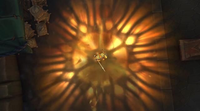奉献作为圣骑士的招牌技能,本身就有很高的辨识度。将圣光灌入脚下的大地,让邪恶无处藏身,其终极形态在巫妖王进攻圣光之愿礼拜堂时便有体现,即使强大如巫妖王也无法在圣光的领土上取胜。而在8.1版本中,奉献的动画效果得到了重做,圣光不再是散落在地面上,而是有了类似礼拜堂彩玻璃的纹路,不知道是不是蕴含着特别的意义。