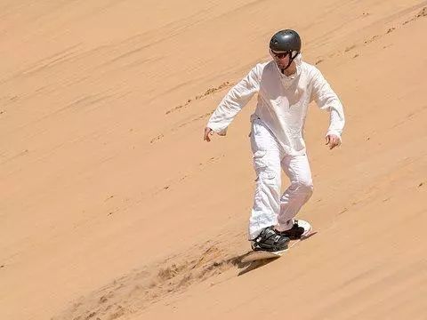 滑沙运动是近几年流行起来的极限运动,在中东地区尤为盛行,与雪地运动相似,沙地运动也需要特殊的滑板、滑沙车等装备,这项运动体现着人类与恶劣天气抗争的斗志,也凸显着运动者的乐观精神。有着“变废为宝”的既视感。