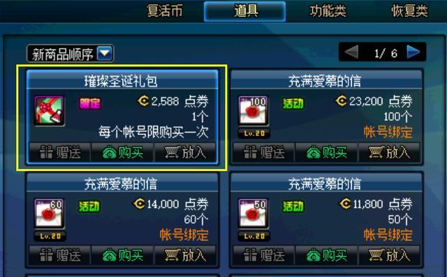 昨天体验服更新了一个新的道具,一个售价2588点券的璀璨圣诞礼包,这个礼包每个帐号仅能购买一次,那么这个礼包需要2588点券,不可以使用代币券购买,那么值不值得呢?我们分析一下这个礼包能给玩家带来多少价值。