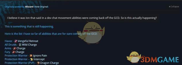 针对于公共CD调整的相关问题一直受到美服玩家吐槽,而且从8月份《争霸艾泽拉斯》上线至今wowhead论坛上就从未停止过对于这一修改的批评。面对美服喷子的“骚扰”暴雪终于在近日“被迫”发布蓝帖声明将原有的公共CD移除。这位名叫Ythisens的社区经理公布了蓝帖内容。