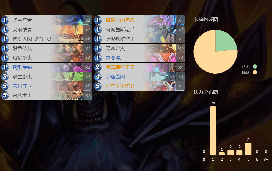 所以,知道为什么这套卡组能上传说了吧?不过,平民玩家也别担心,这套卡组新卡不多,满打满算也就残酷集结、萨隆铁矿监工这两张。就算你再穷,也不可能两三百尘都没有吧?而且这两张一费卡是真的很强。