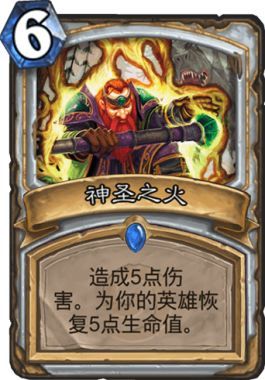 关于神圣之火,这是一张我个人觉得很好用的卡,弥补了我们比较缺乏单解的问题,而那5点奶在一些时候也可以救命,5点伤害还可以补充我们的斩杀,十分灵活的一张卡。