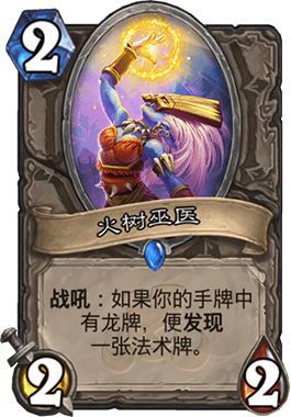火树巫医在这套卡牌中地位也是非常有效的,可以寻找多的法术配合自己,增强了牧师的灵活程度,以及补牌能力,还可以少带更多法术,来增大暗影视界找心灵震爆的概率。