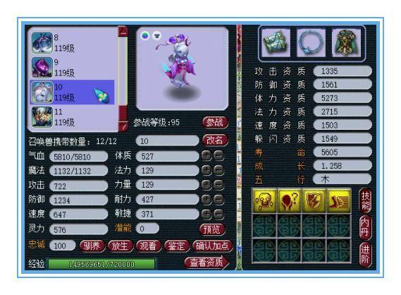 又是一只8技能瞬法须弥宠,不过这只吸血鬼是敏法宠,532的速度配上高级敏捷,出手速度特别快!