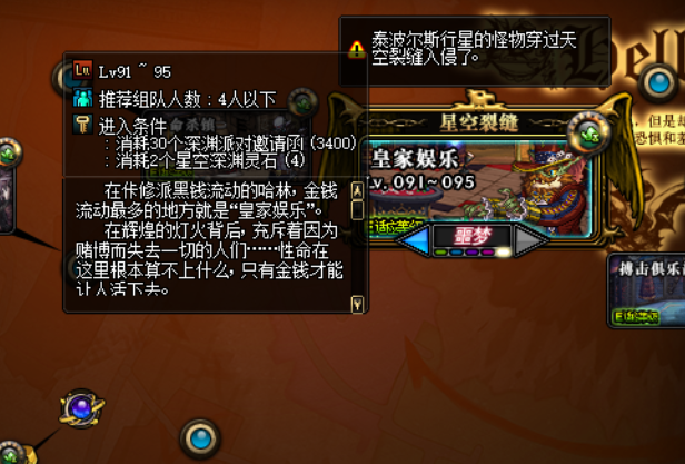 普通星空深渊的地图每天都会变,入场需要消耗30张深渊票和2个星空灵石,一般来说普通星空深渊保底可以获得5个泰波尔斯的小材料,至于95泰波尔斯史诗的爆率那真是低到令人发指,平均5个史诗有4个哈林……