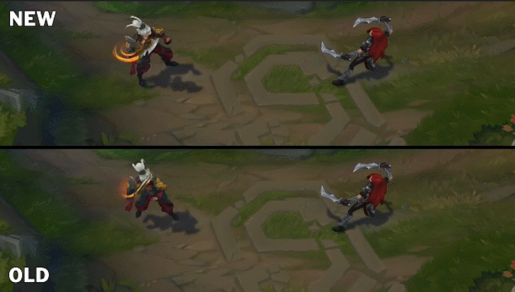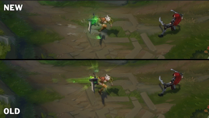 对比老版的E技能,这个护盾简直不要太明显,锐雯看起来就像被罩着一样。