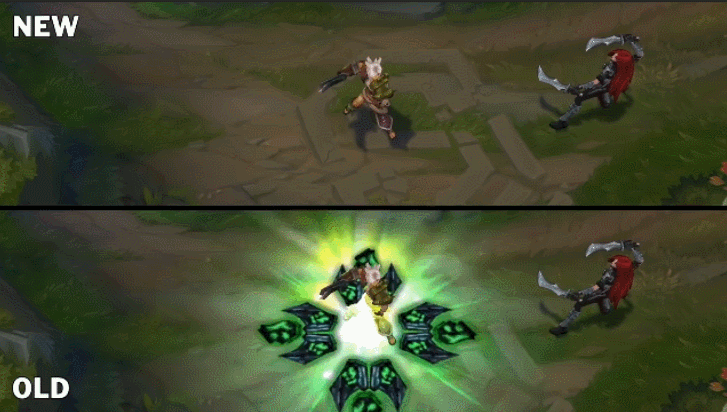 优化后的W技能在释放后会出现一个印记,替换掉了之前在地上明显的印记。