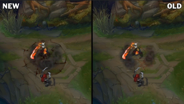优化后的原皮在点击了Q技能后,每一次攻击都会出现一个裂痕,到第三次击飞时会出现更大的裂痕!看着你就能感受到这一跳的“重量”了吧~