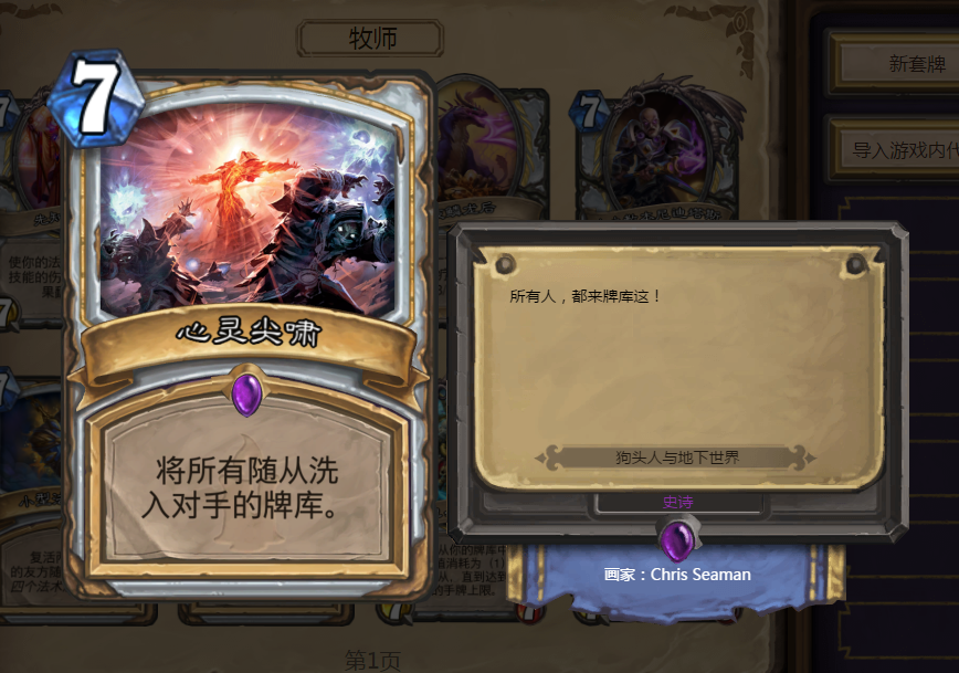 作为牧师最强大的解场法术,心灵尖啸不管是费用还是效果上都非常OP,甚至还能污染部分卡组的卡池,所以只要牧师玩家还在这张卡牌必定是最受玩家欢迎的卡牌之一。而玩家们最受欢迎卡牌的前二都是牧师卡牌,有玩家担心这会不会预示着牧师将在下个版本削弱,不过好消息是这2张卡牌马上就要退环境了。