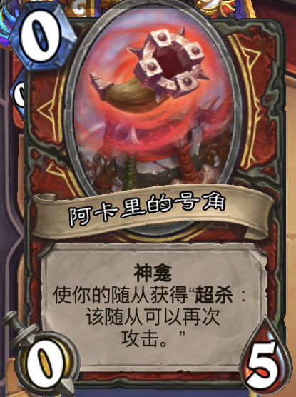 战士-阿卡里的号角:随从获得“超杀”触发可再攻击一次。