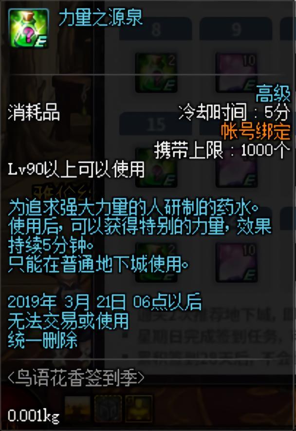 第一天的奖励是力量之源泉,使用后以为是获得持续5分钟的属性加成,但是神奇的事情,这药水一点用处都没有,只能在普通地下城中使用,星空裂缝,黎明裂缝,泰波尔斯均无法使用,而在普通图中使用后,角色变发光了,然后在怪物的脚底出现出现裂缝,然后喷射出爆炎攻击,伤害非常低,在范围内的所有怪物都会受到攻击,搬砖?一点用都没有。