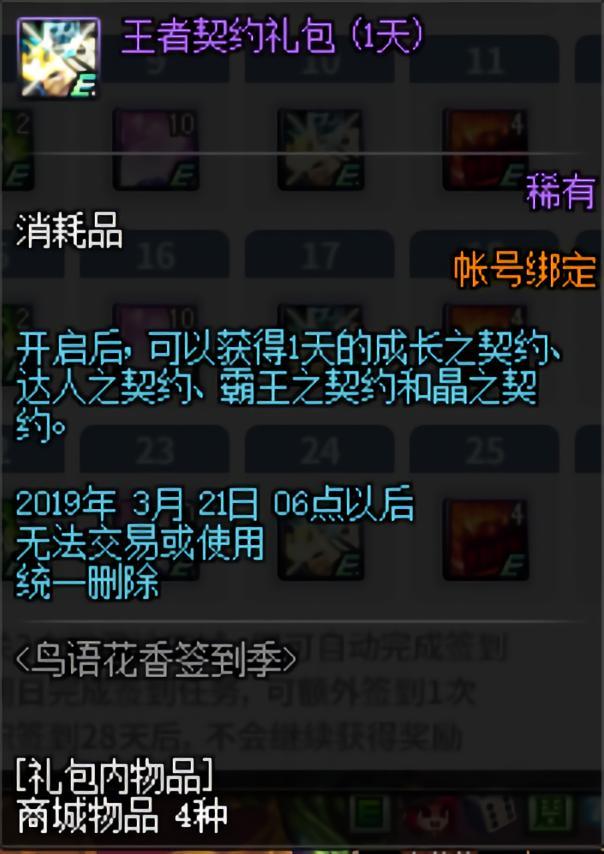 第三天是一个1天的王者契约礼包,这也是每一期必备的东西,没啥好说的。