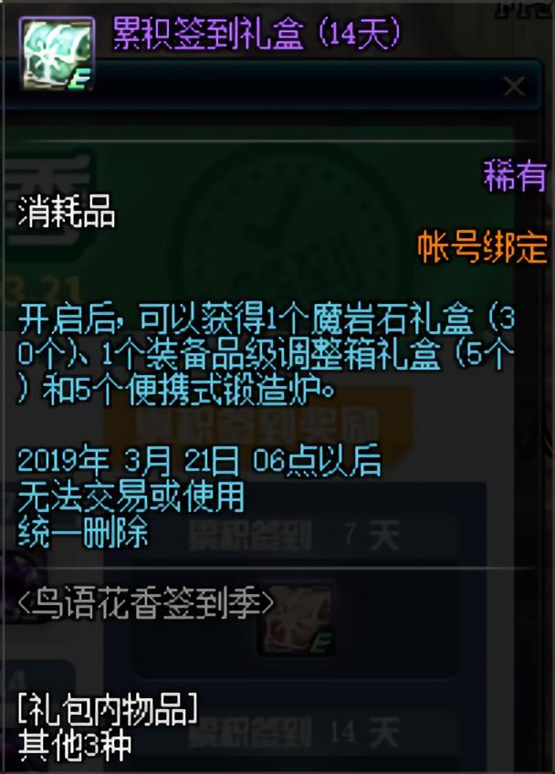 DNF的每个月都会为玩家们带来活动奖励非常丰厚的签到活动,这些活动往往能为玩家们带来非常多的装备材料,帮助玩家们更快速的毕业自己的地下城账号,下面就来看看最新的鸟语花香签到季的奖励分析吧。