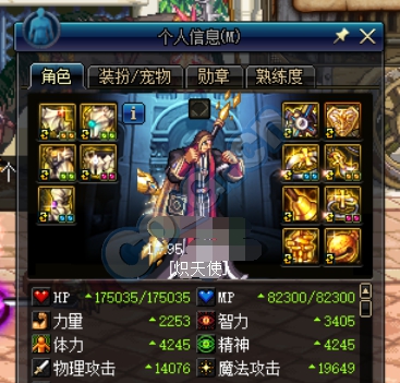 然而这套一身红智力2个白金的95a+武器防具首饰的审判伤害却是