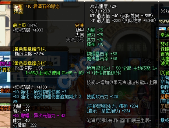 装备效果:除了面板和技能等级,技能加成分别是: