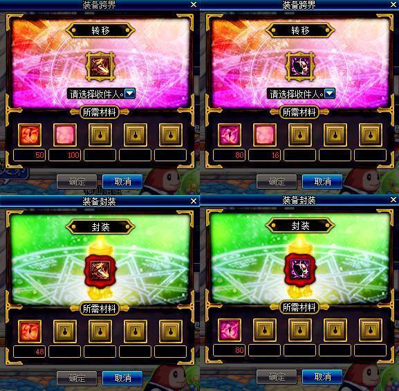 NPC歌兰蒂斯跨界或封装可交易类型的装备,所消耗的材料要比封装多一点。自从歌兰蒂斯处开放封装和跨界系统后深受各大玩家的好评,不少玩家都纷纷把大号中用不上的装备跨界给小号,或者封装出售换取金币。如果你打算把装备跨界给小号,而又不着急的话,建议大家选择封装,因为封装消耗的材料更少,这个方法只适用于可交易类型的装备。