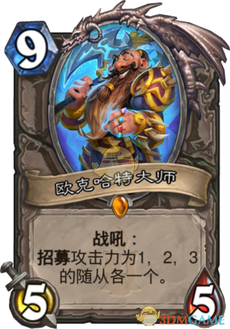 排名第一的则是中立卡欧克哈特大师,这张卡又再次火爆起来,除了以前的墙德会用之外,新兴的超强卡组城墙牧(卡组见上次文章)也是把他作为了核心,一旦他下场就是连续不断的铺场,效果真的很强大!
