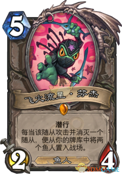 目前狂野里面的鱼人骑非常强势,前期输出可观,后面还有王者归来的超级一波,芬杰由于带潜行效果,所以要触发这个特效也是比较容易的,只要触发了一次就不亏,后面的王者归来也更强势一些。