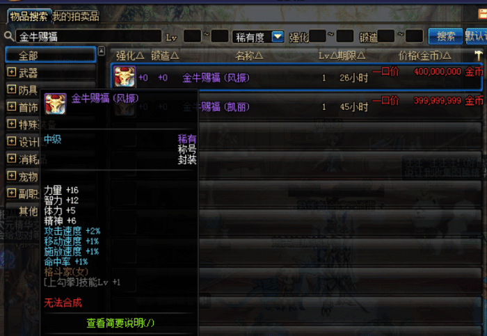 金牛赐福称号,2009年春节导师套称号,在当时已经算很强的称号,但是对现在来说,连称号簿中的都无法比。但因绝版纪念价值很高,拍卖行都卖4亿游戏币,比白虎称号价值还要高!
