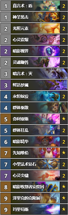 最近直播中看到部分玩家在天梯前五分段冲分时曾使用过墙牧这种非常古老的玩法,这套玩法其实也是采用了心火机制,这套玩法放弃了龙随从。反正大家只需要知道心火牧这套玩法目前挺强的,至于具体搭配什么随从,就看个人了。