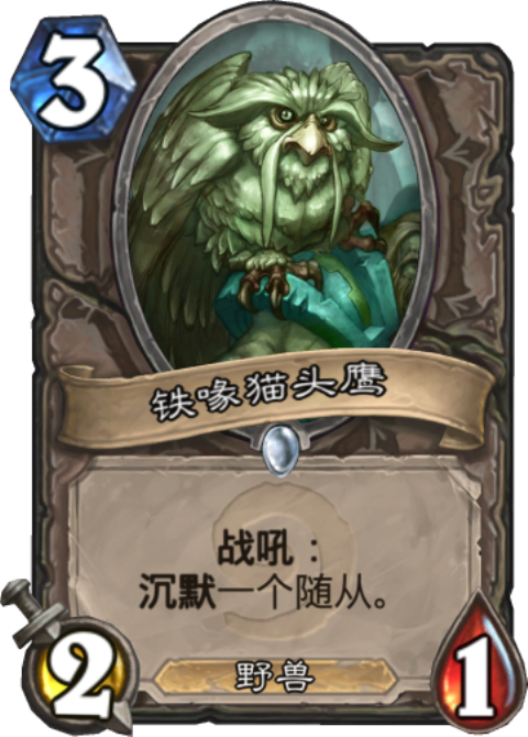 之前猫头鹰的费用是2费,基本所有需要的沉默的卡组都是带它,毕竟费用低灵活嘛,后来被改成了3费,大家觉得它肯定是废了,不过随着奇偶卡组的出场才知道这样削弱的用意,不然奇数卡组就完全没沉默了!目前也是在快攻奇数卡组中有不错的出场率和强度。