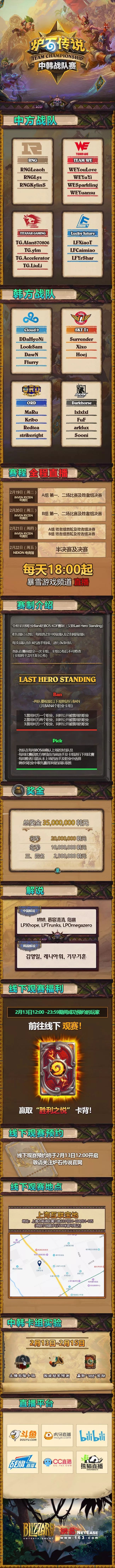由中韩合办的《炉石传说》中韩战队赛将于 2月19-2月22日 在韩国举行,来自中韩两地的8支顶尖炉石战队将为终极荣誉而战,在为期4天的全新3v3 KOF赛制对抗中进行激烈较量,争夺冠军战队头衔及3500万韩元总奖金。究竟哪支队伍将夺得冠军殊荣,为自己的国家争得荣誉?让我们拭目以待!