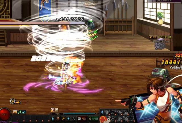 新增的35级主动技能,向前方突进后跃起旋转一周进行攻击,伤害数值与螺旋彗星落差距不大。