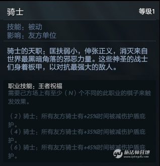 骑士棋子每3秒进行判定,是否获得护盾,每层独立触发,每层效果提供30护甲,75魔抗;