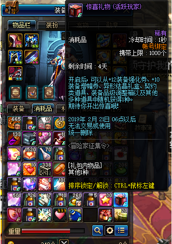 而这个礼盒中居然有+12强化券和+10增幅券,大家最后别把这个礼盒给忘了,不然可能损失+12强化券错失好几亿金币。