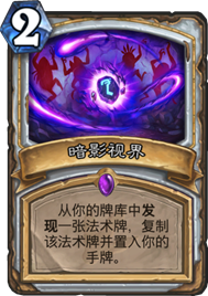 暗影视界:这张卡小伙伴们一定要明白当前我们需要什么而去使用。举个例子:我们打快攻对局快要抗不住的时候,需要找心灵尖啸、赞美诗等等来配合场面苟活。而打一些控制对局,我们的伤害可能会不够,那么就必须找心灵震爆。其次还有一个小技巧,就是配合DK,暗影视界找暗影视界刷新英雄技能。