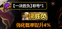 另外,购买凯丽手办也可以获得一个一决胜负称号,可以增加4%的强化概率,搭配赫尔德宠物可以尽可能的提高强化概率。