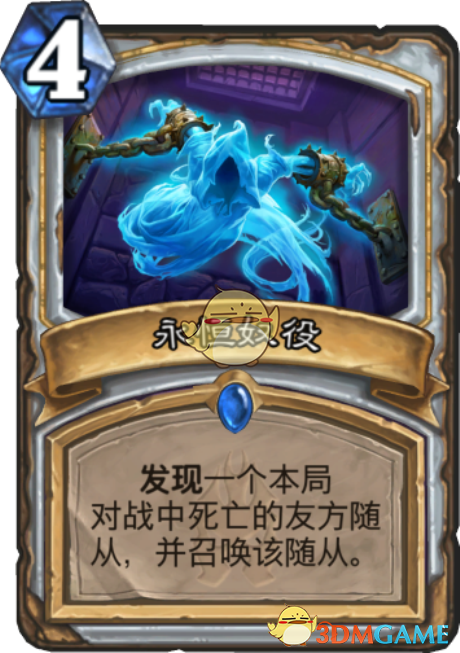 这也是牧师的一张配合卡,由于在相关的卡组中,牧师的生物都比较大,需要费用也比较多,在它们死亡之后,这张牌能用较少的费用将他们复活,不仅节约了费用,还有各种配合,有时候更是能一击致命。