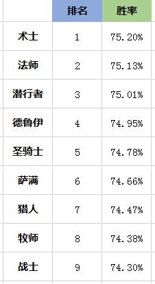7胜以上的热度排名中,法师依然是第一,毕竟高胜的诱惑力还是比较大的,牧师和战士紧随其后。