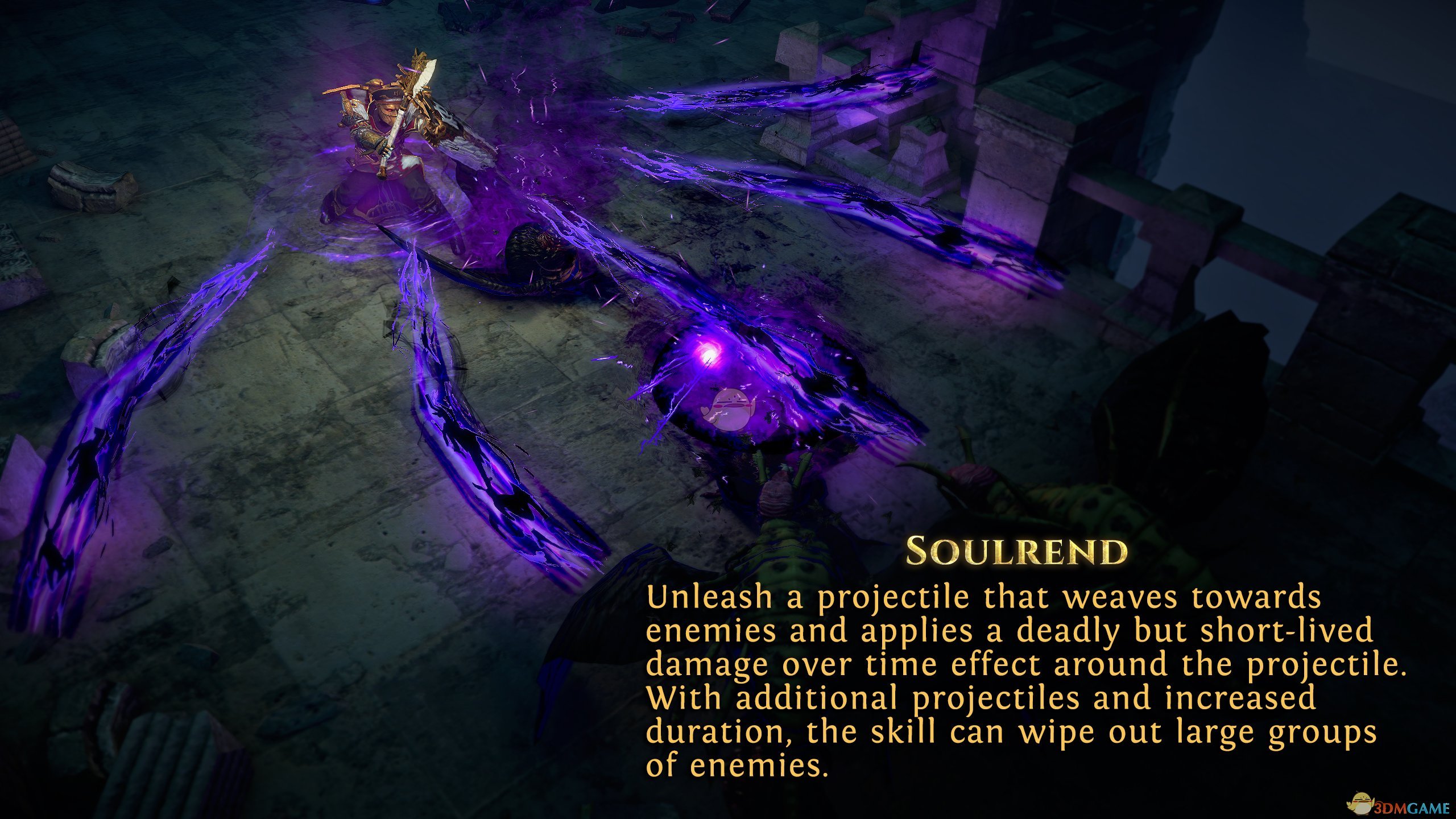 技能可搭配多重投射物以及增加持续时间来歼灭大片的敌人.