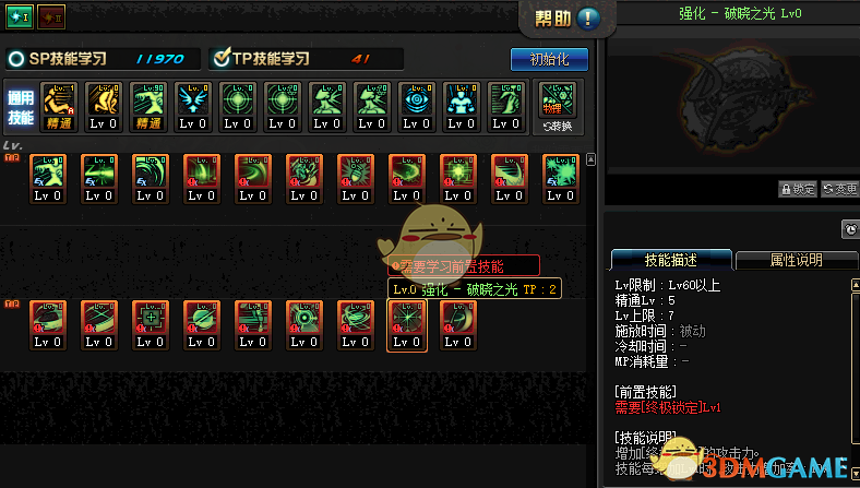 全职业新增60级和70级技能的TP技能属性: