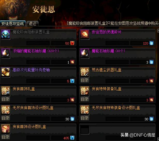 安徒恩攻坚队商店,虽说,在95版本,安徒恩系列史诗装备,已经被渐渐的淘汰。但至少对小号来说,是不错的选择。而且,兑换一把荒古遗尘武器,只要5个红豆,兑换贪食系列的装备,只需要3个红豆,在材料方面,可谓是大幅度的下调。
