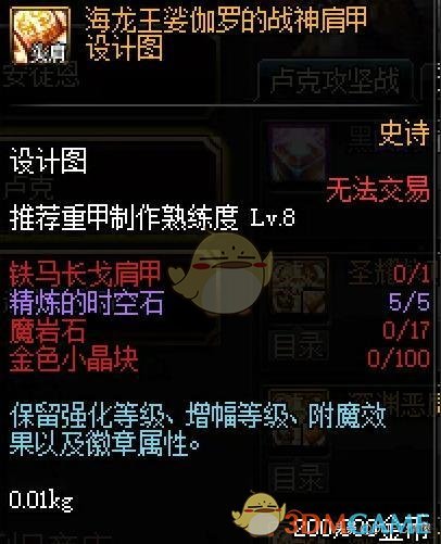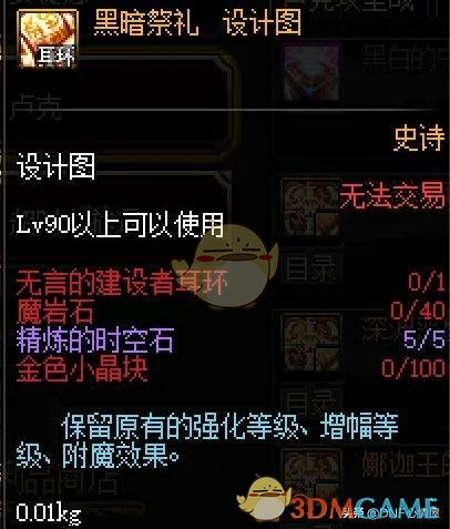 其次是90级B套装备,原先升级需要34个魔岩石,10个精炼的时空石,1000个金色小晶块。而改版以后,只要17个魔岩石,5个精炼的时空石,还有100个金色小晶块。