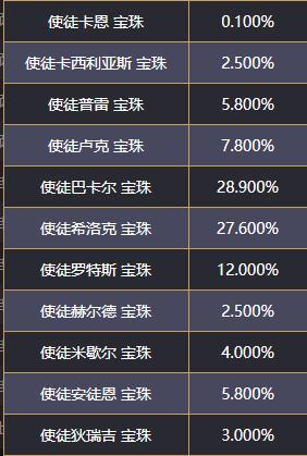 魔盒更新,加入了史诗宝珠和史诗宝珠罐子,但是获取难度也很大,越好的宝珠概率越低,使徒卡恩宝珠的获取概率仅为千分之一,使徒巴卡尔的概率最高,达到了28.9%,算是比较容易获取的。