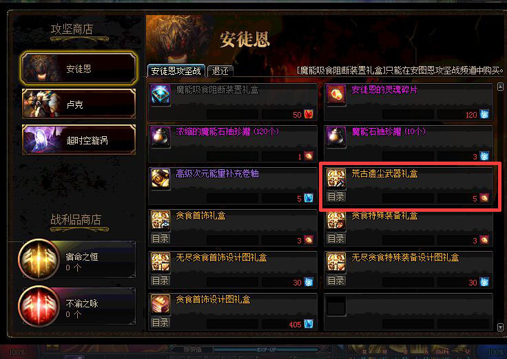 另外在同一时间更新的安图恩减负中,一把荒古武器的兑换只需要5个红豆,目前安图恩团本一个月以内就可以凑足5个红豆,兑换完荒古之后,就可以顺利做出一把圣耀武器过渡,剩下的装备打打卢克金团,再配合哈林区域,很容易就能做出来。