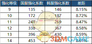 找冬娜姐姐帮我截图了下韩服的5-14的强化截图,反推了下强化系数,结论如下: