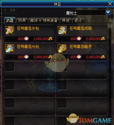2. 没有圣耀武器或者目前没钱打造苍穹武器:武器-防具-特殊-首饰