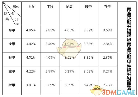 通过超时空旋涡获取材料后,泰波尔斯系列装备可以升级成为超界:泰波尔斯系列装备,这样一来,使得防具的提升会超过特殊装备的提升,而且加上泰波尔斯升级成为超界:泰波尔斯之后,套装效果依旧保留,让我们可以放心大胆的将材料进行升级。
